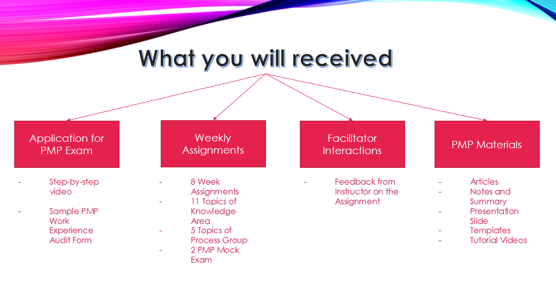 In order to assist our students to prepare for the exam, at the conclusion of the class session, we will provide comprehensive PMP Revision Materials along with an 8-week guided revision materials via our Google Classroom