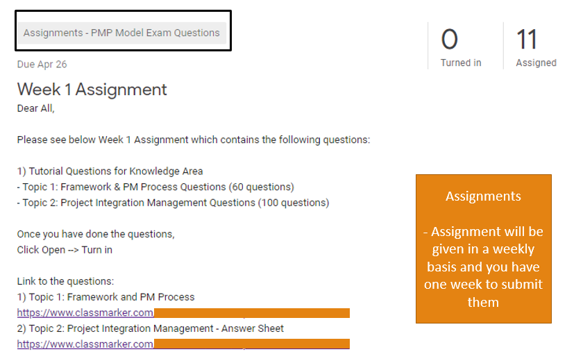 In order to assist our students to prepare for the exam, at the conclusion of the class session, we will provide comprehensive PMP Revision Materials along with an 8-week guided revision materials via our Google Classroom